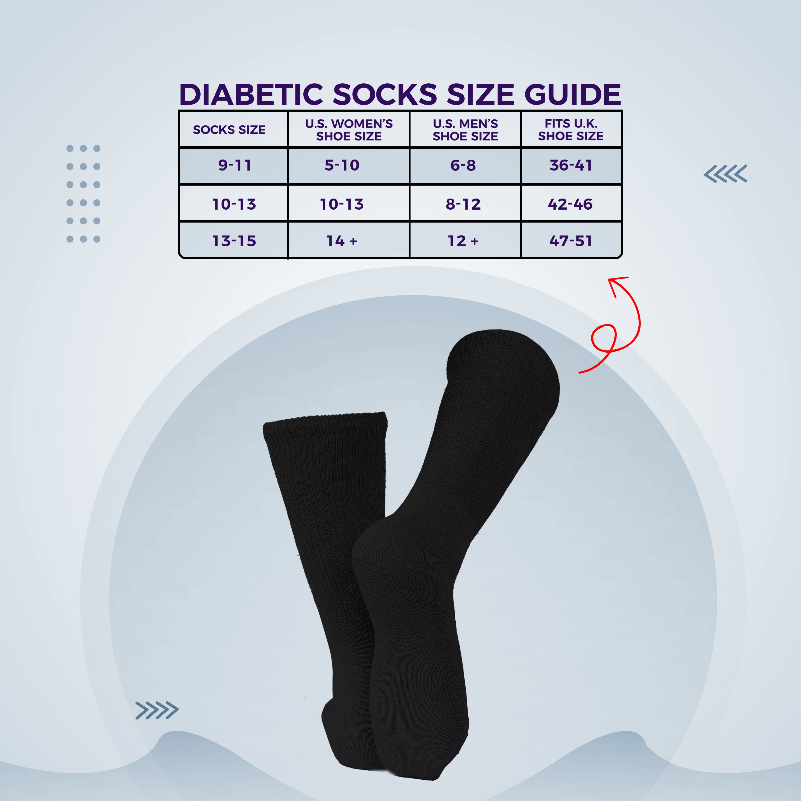 6 Pairs Black Diabetic Socks, Non-Binding Extra Wide Doctor Approved Cotton Socks for Men’s Women’s Big & Tall Size 13-15