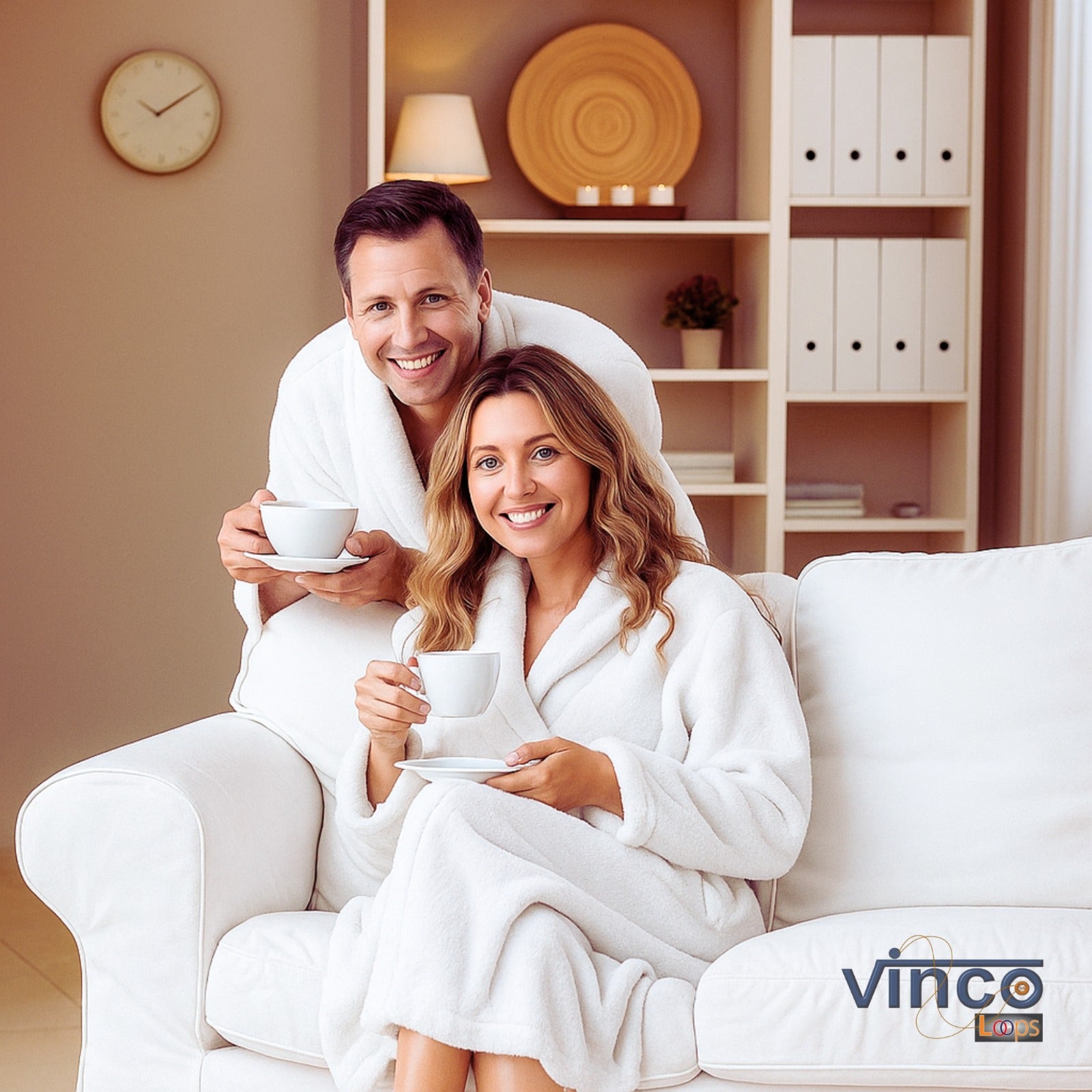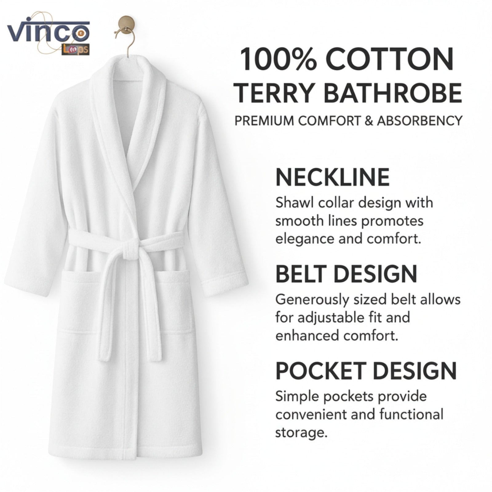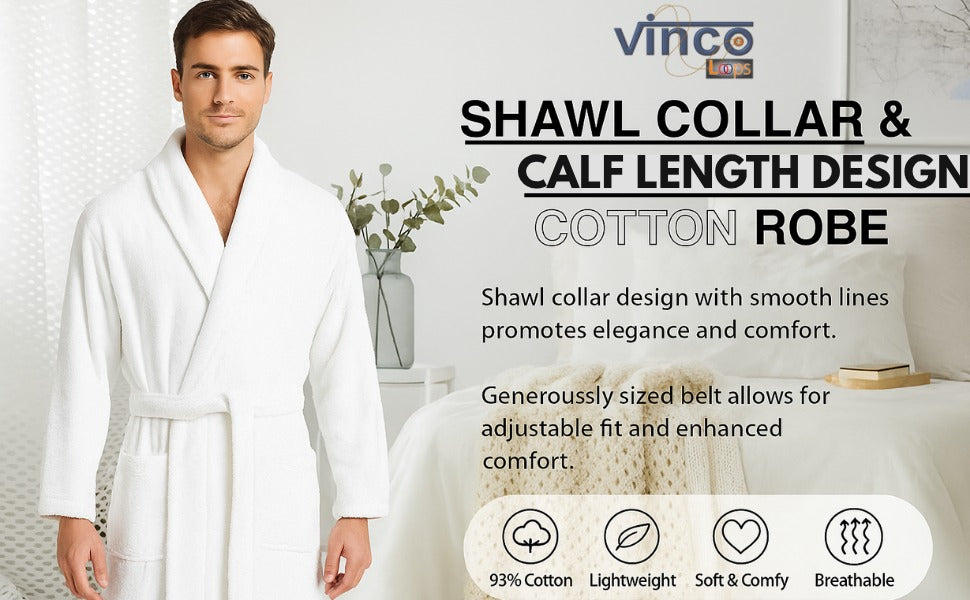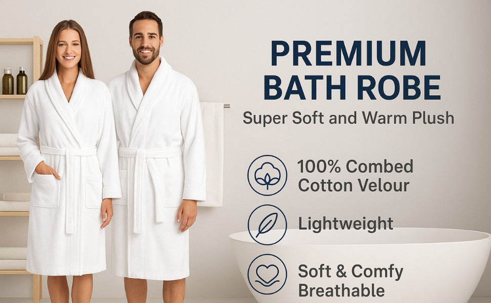 Velour Robes - Luxury Hotel BathRobe 100% Cotton Quality with Side Pockets & Waist-Tie Belt One Size Men & Women Spa Robe White (US, Alpha, One Size, Regular)