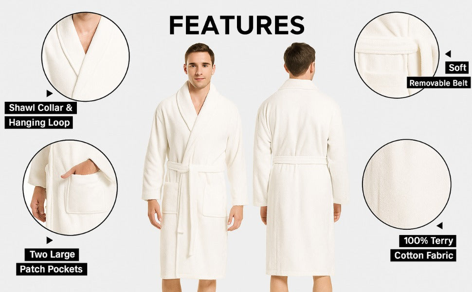 Material: 100% Cotton LUXURY DESIGN : The best hotel quality bathrobe, complete with a fluffy outside and soft fleece...